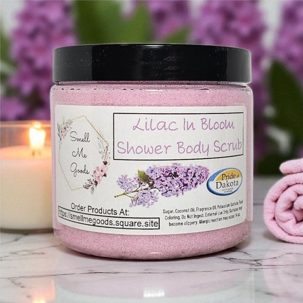 Experience the ultimate in luxurious exfoliation and nourishing hydration with Lilac In Bloom – Sugar Body Scrubs. Indulge your senses with the delicate floral scent that will transport you to a tranquil garden filled with blooming lilacs. Our carefully crafted formula is designed to gently remove dead skin cells, leaving your skin feeling soft, smooth, and radiant. The lavishing lilac fragrance will linger on your skin, providing a subtle and refreshing aroma throughout the day. Treat yourself to the enchanting experience of Lilac In Bloom – Sugar Body Scrubs and let the sweet floral scent of true lilacs in full bloom uplift your senses. Sugar, Coconut Oil, Fragrance Oil, Potassium Sorbate, Food Coloring. Do Not Ingest. External Use Only. Surfaces may become slippery. Allergic reaction may occur. 14 oz.
