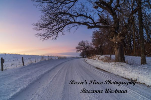 Driving to my location for a winter sunrise shoot and had to stop and along this curvy road to catch the pre sunrise colors along this road with the fenceline