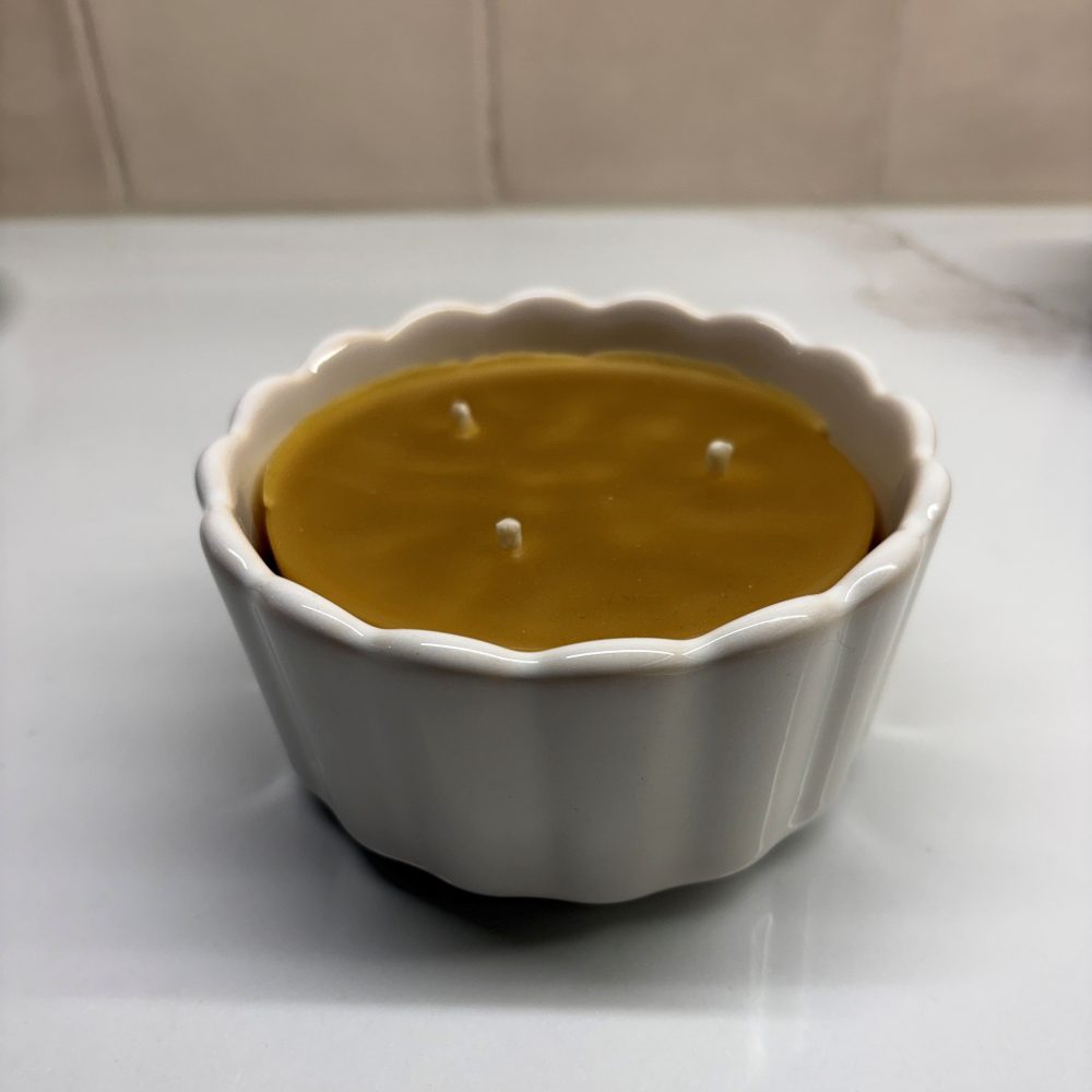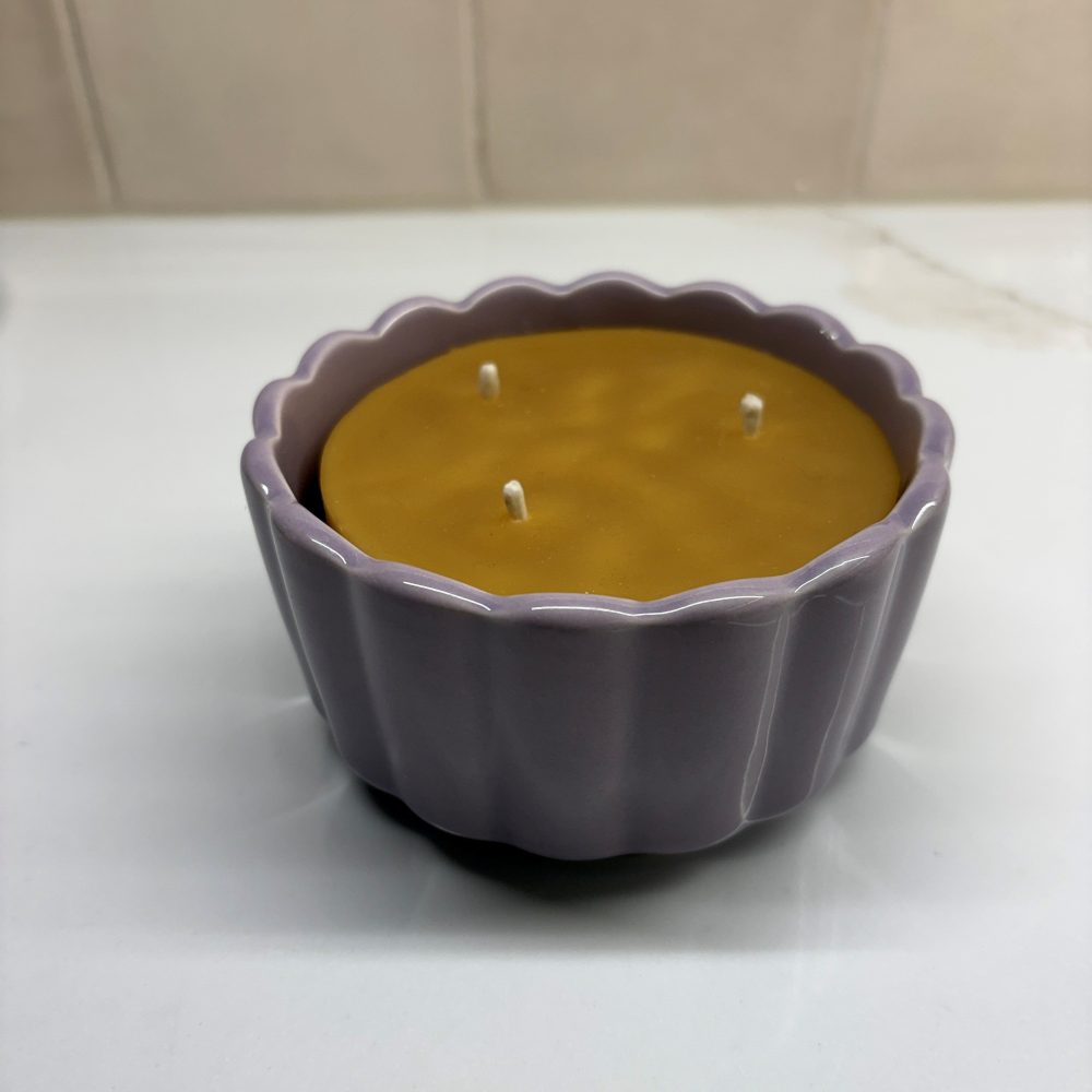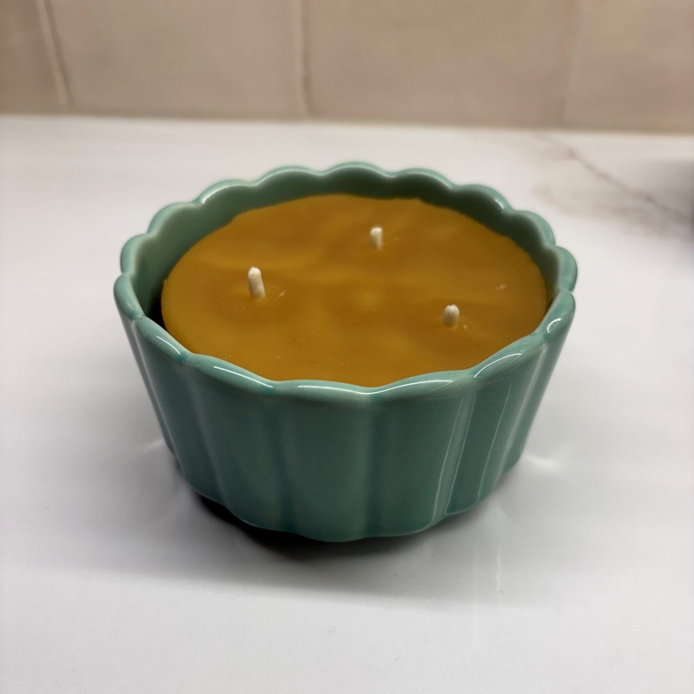 Introducing our new Spring 8 oz Beeswax Candles in a pastel scalloped container!