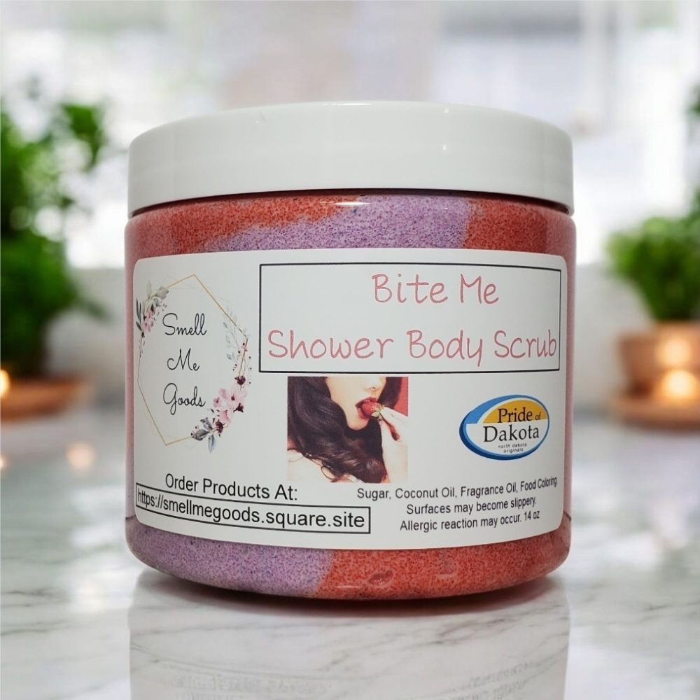 Indulge in the luxurious experience of our Bite Me Shower Body Scrub. This exfoliating formula is specially designed to gently remove dead skin cells, leaving your skin feeling smooth and revitalized. With a refreshing scent that lingers on your skin, this scrub will awaken your senses and invigorate your shower routine. Enriched with hydrating properties. The enticing notes of sugared strawberry, pineapple nectar, and sparkling citrus enhance a deep background of vanilla orchid and clove bud, creating a truly irresistible aroma. Treat yourself to a spa-like experience in the comfort of your own home with our Bite Me Shower Body Scrub.