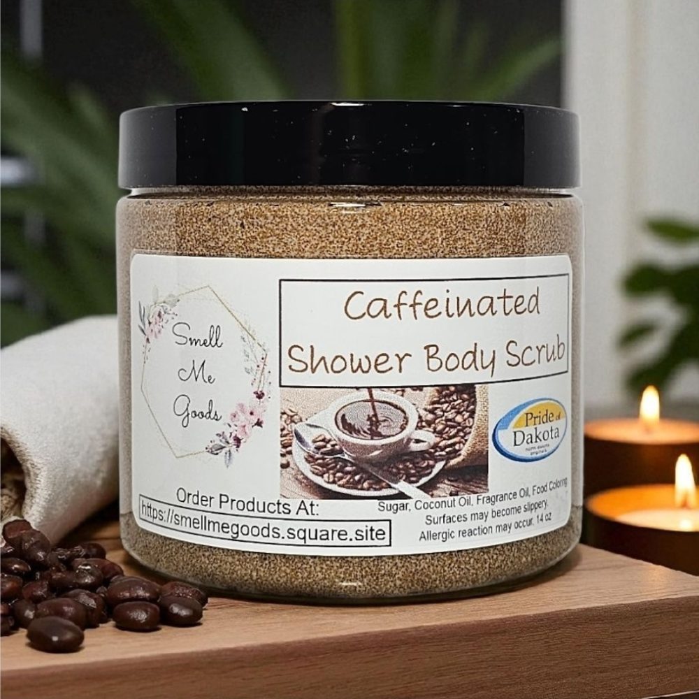 Experience a refreshing and invigorating shower with our Caffeinated Shower Body Scrub. This unique body scrub is designed to awaken your senses with its energizing scent and provide a revitalizing exfoliation for your skin. The smooth and creamy coffee base is enhanced with subtle notes of cinnamon, vanilla, and a touch of milk, creating a truly indulgent experience. Not only does our Caffeinated Shower Body Scrub leave your skin feeling velvety soft, but it also helps to improve circulation and promote a healthy, radiant glow. Treat yourself to the ultimate shower experience and start your day with a boost of energy. Add our Caffeinated Shower Body Scrub to your cart now and indulge in the luxurious benefits it offers! 14 oz. coconut oil, sugar and fragrance oils.