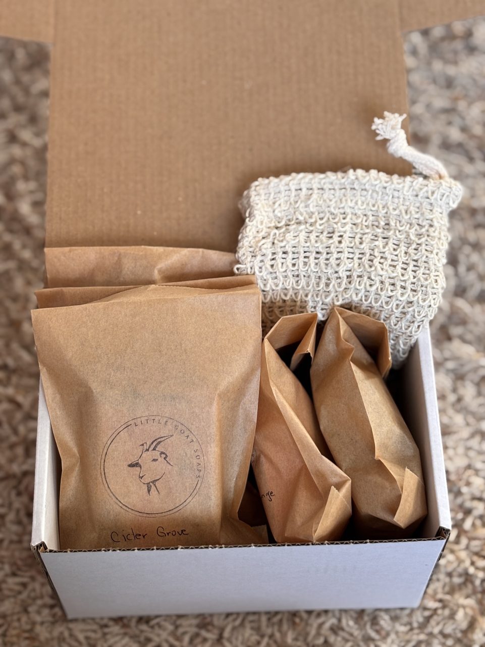 Tis the season for giving! Whether it is for Christmas, a birthday, a hostess gift, or just because–our goat milk soap gift packages are the perfect fit! Each package includes: