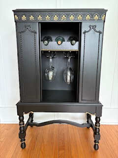 This unique radio cabinet has been transformed into a stunning beverage cabinet for wine or liquor.