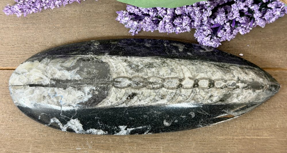 A fossil of an extinct “straight-shelled” cephalopods that lived during the Upper Devonian period around 370 million years ago. Possess physical and spiritual healing powers and helps increase ones’ life span. Reduces toxins, stress, tiredness, exhaustion, low energy, and anxiety. Enhances telepathy and stimulates the mind. Helps bring positive energy into one’s life or reduce depression symptoms. Increases confidence, grounding, and openness. Empowers accomplishments, and allows one to gain knowledge.