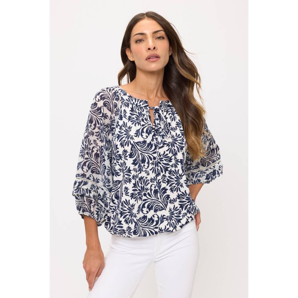 Featuring a playful tie-front detail and soft round neckline, it’s the perfect blend of feminine and fun. The mixed media construction adds texture and visual interest, while the bubble hem creates a flirty silhouette that’s sure to turn heads. Dress it up or down.