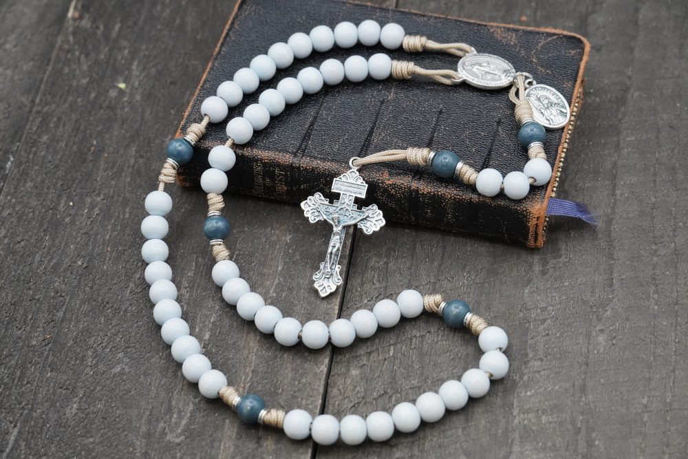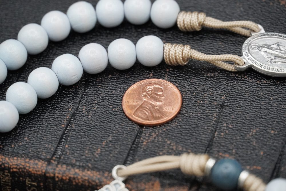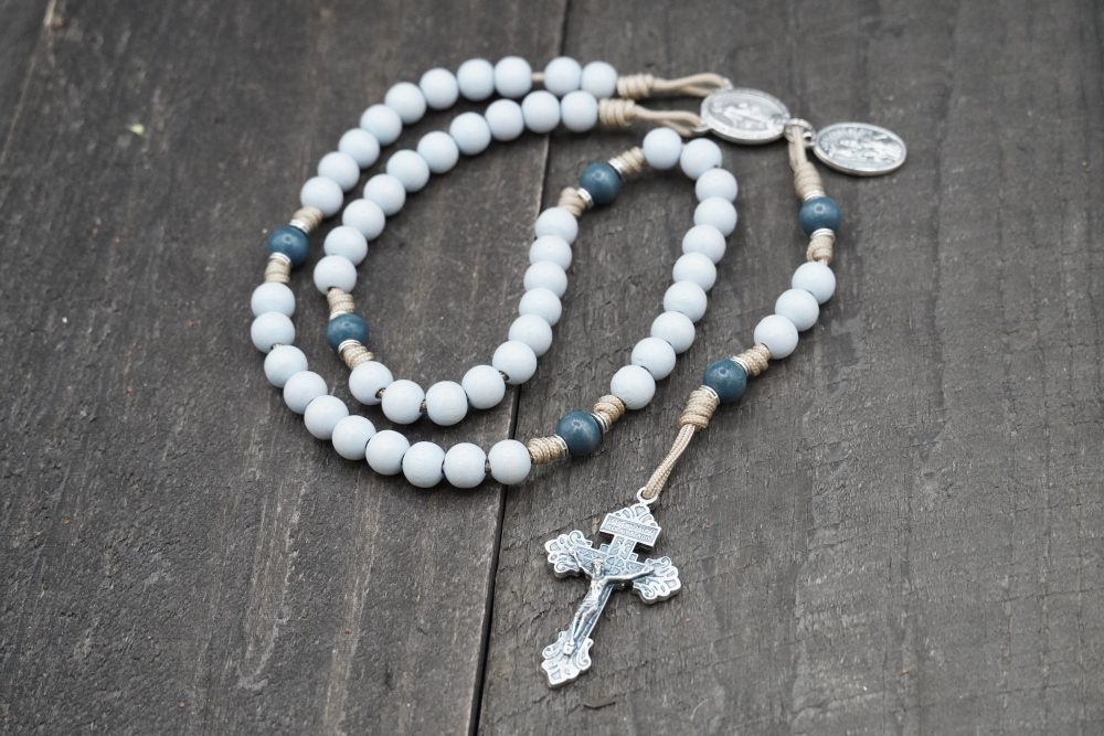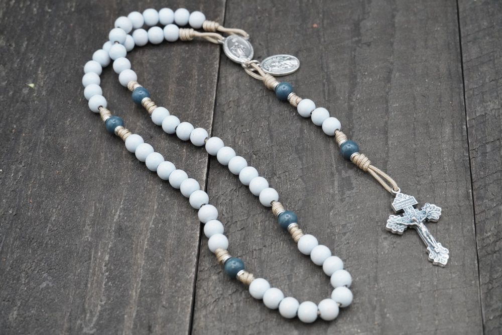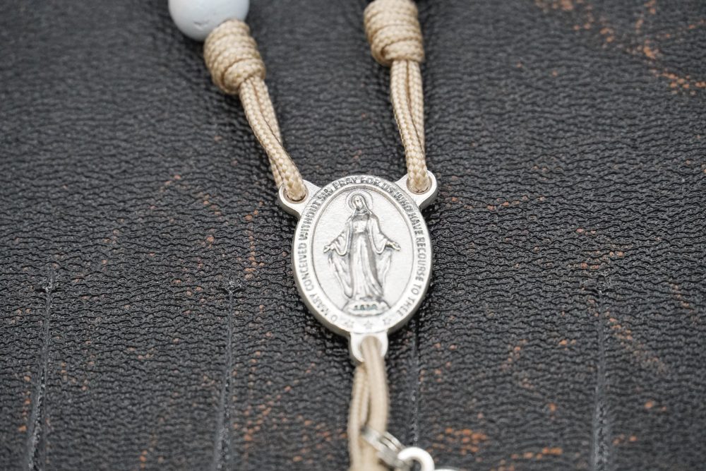 Hand-tied with military-grade taupe 95 paracord, this rosary is both strong and serene. Measuring approximately 19 inches, it’s fully wearable—a faithful companion for prayer, discernment, and perseverance in God’s will.