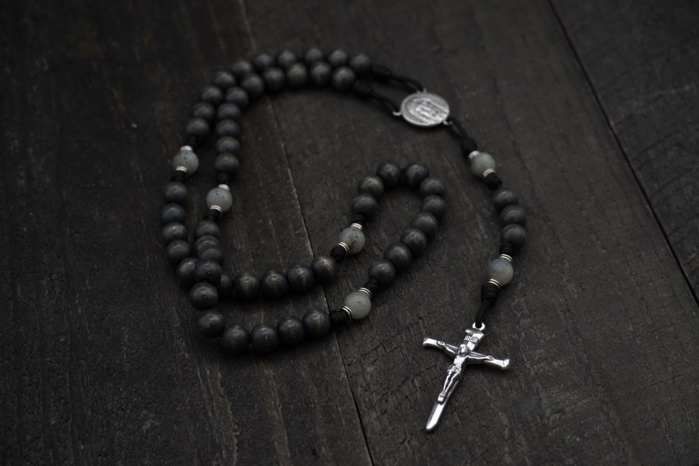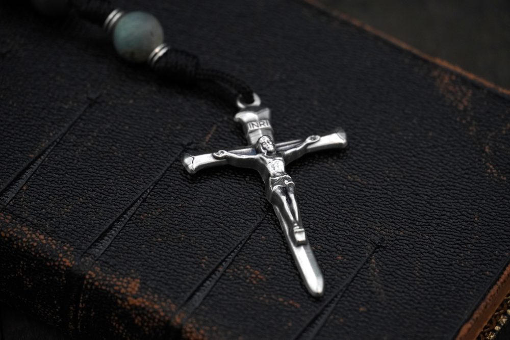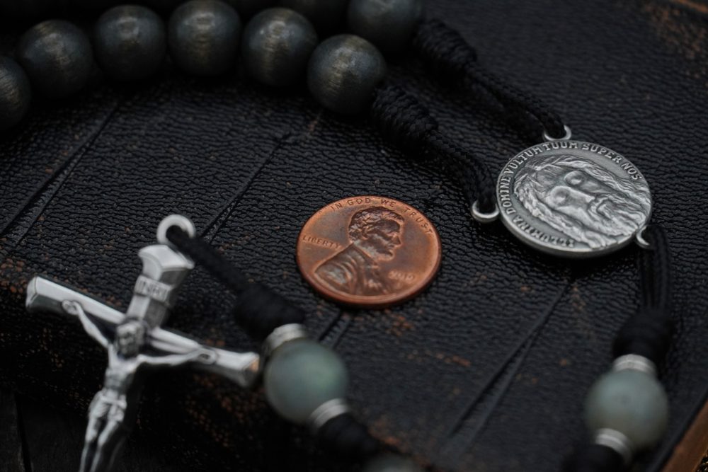 Tied with military-grade black 95 paracord, this rosary is made to last a lifetime. Its 19-inch length makes it fully wearable and perfect for daily prayer, meditation, or quiet reflection.